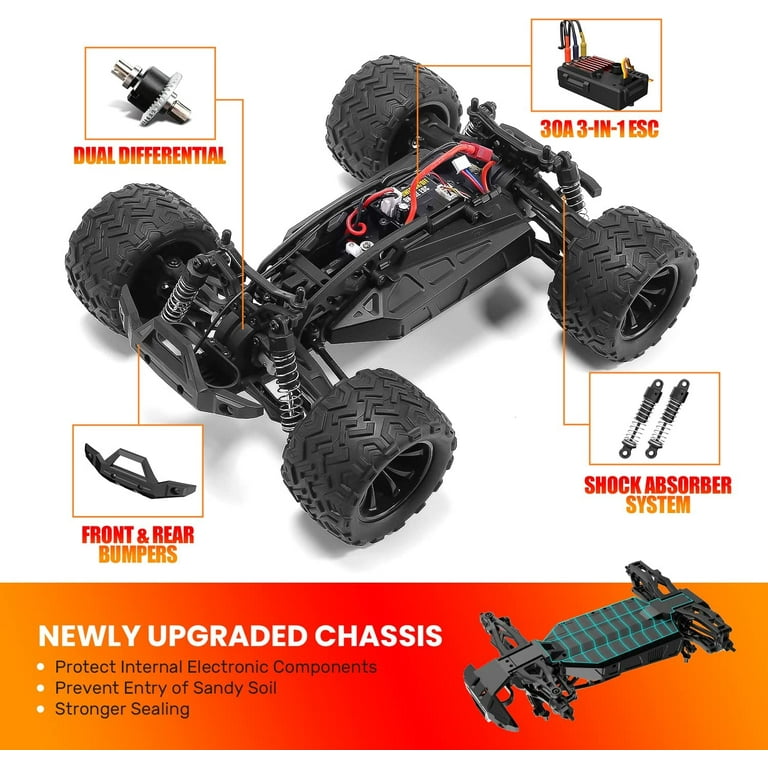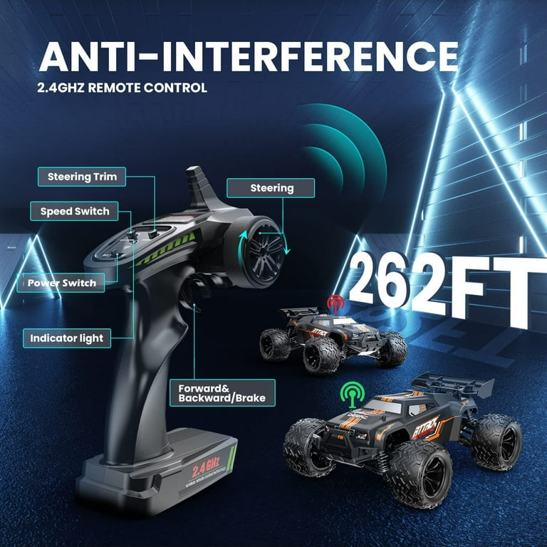 Joystone High Speed Rc Car 1 16 Scale 45 Km H Monster Remote Control Truck All Terrain Off Road Truck 4wd Electric Vehicle Hobby Toy With 2 Batteries For Kids Adults Walmart Com